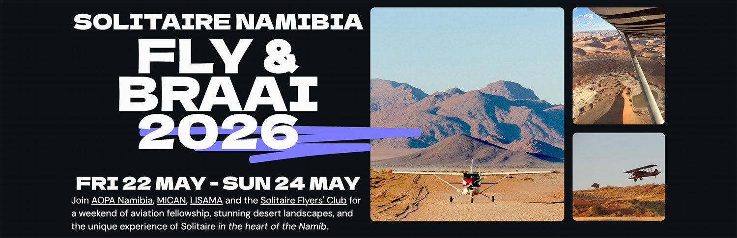 The very first annual Solitaire Fly & Braai and co-hosted AOPA/MICAN/LISAMA General Meeting will be held at Solitaire Namibia (FYSO) over the weekend of 22 – 24 May 2026.
